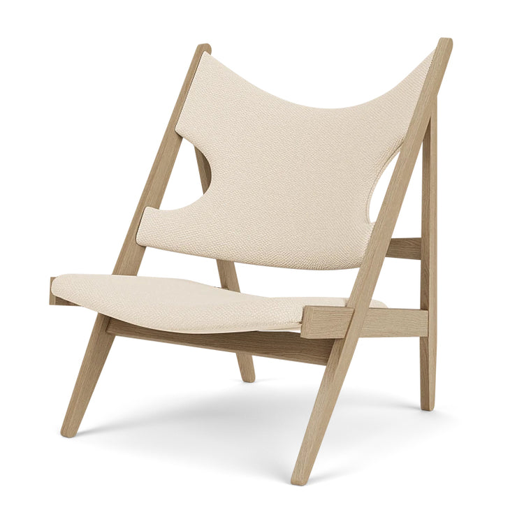 De stoel waarin ‘gewerkt’ mag worden, oftewel knitting (breien) want er zijn uitsparingen gemaakt voor de ellebogen te laten rusten tijdens het breien. Deze stoel van Ib Kofod-Larsen, voor het eerst gelanceerd als een beperkte oplage in 1951, maakt een triomfantelijke terugkeer naar de wereld van modern Deens design onder Audo’s concept. Dit is de eerste stap van het merk naar klassiek meubilair. Het gevoel voor verhoudingen van de stoel en de ongeëvenaarde kwaliteit maken het tot een natuurlijke keuze om in hedendaagse interieurs te brengen.