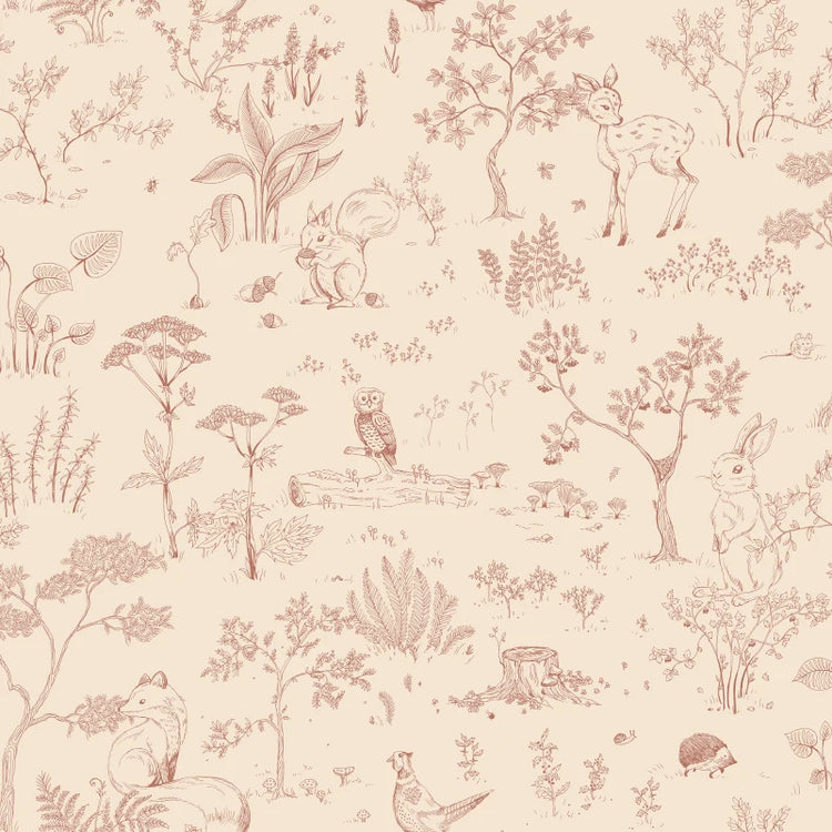 Het Hollie behang brengt een dromerig bos tot leven. Tussen de bladeren en bloemen zie je allerlei bosdieren verschijnen. Het ontwerp is fantasierijk en gedetailleerd, en geeft een ruimte een rustige maar speelse sfeer. Verkrijgbaar in 4 kleuren.