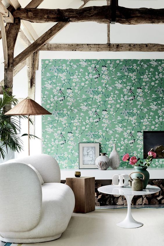 Little Greene behang Massingberd Blossom Verditer   Little Greene behang Massingberd Blossom Verditer
