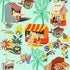 Carretto Del Cibo vangt de levendige sfeer van een Siciliaanse markt op met grillige elementen en kleurrijke karren vol goederen. Tegen een lichtbeige of babyblauwe achtergrond komen de levendige tinten echt tot leven, waardoor een opvallend contrast ontstaat dat de aandacht trekt..
