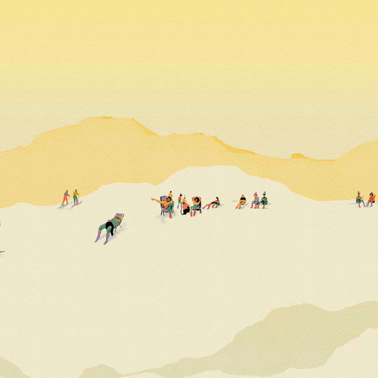 Apreski van Coordonné is een landschapsontwerp uit de Coco Dávez Colortherapills-collectie. Het vangt de warme, knusse sfeer na een actieve dag op de piste. Ontspannen, voldaan en omringd door kleur.