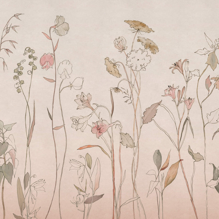 Coordonné’s Countryside Pink is een behang met een roze-lila landschap. Het lijkt wel wat op een röntgenfoto van wilde bloemen. Het geeft de muur een zachte, dromerige en natuurlijke uitstraling. Verkrijgbaar in vier kleuren.