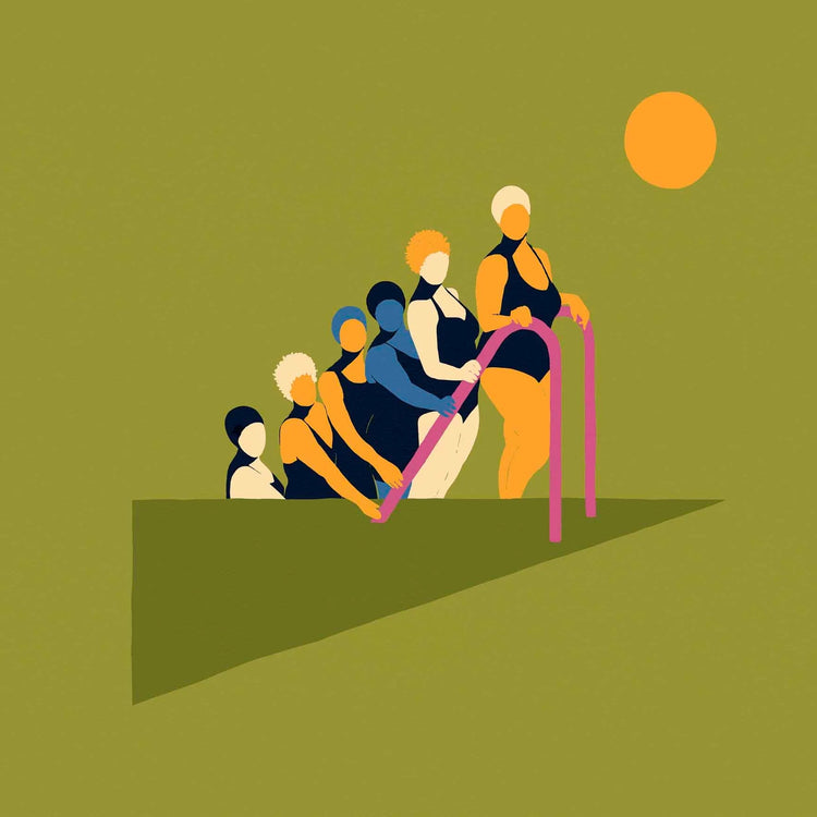 De Equilibrio van Coordonné is een ontwerp uit de Coco Dávez Colortherapills-collectie. Zwemmers die terugdenken aan de goede oude tijd. Vrienden voor altijd.