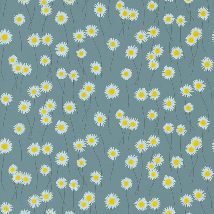 Een fris en dromerig behang dat de charme van de margriet viert. Felgele bloemharten lichten op alsof ze maanlicht vangen, terwijl de speels verstrengelde stelen rust en ritme brengen. Eenvoudig, tijdloos en zacht romantisch. Een moderne knipoog naar een klassiek ontwerp. Verkrijgbaar in 6 kleuren.