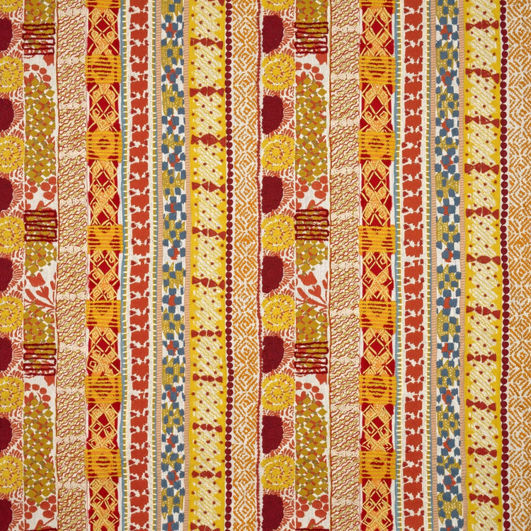 Frida is een jacquardstof geïnspireerd op de wereld van Frida Kahlo, met geweven en geborduurde bloemenmotieven en warme, contrasterende kleuren. Het ontwerp combineert artisinale borduurtechnieken tot elegante strepen met textuur en diepte. Verkrijgbaar in twee kleuren.