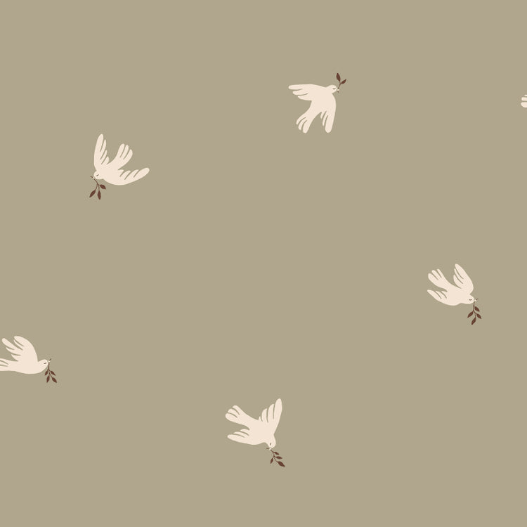 Frida is een rustig behang met sierlijke duiven die door de lucht zweven. De zachte pasteltinten en het vloeiende ontwerp brengen een gevoel van stilte en harmonie in de ruimte. Verkrijgbaar in 3 kleuren.
