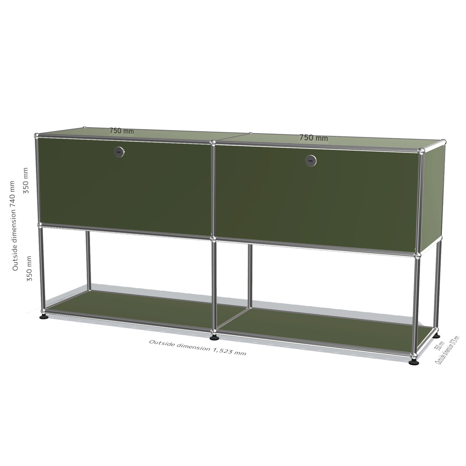 Het USM Haller dressoir bestaat uit 4 compartimenten. De 2 dichte vakken zijn voorzien van een horizontale klepsluiting en bieden ruime opbergruimte om spullen netjes uit het zicht te houden. In de 2 open vakken komen prachtige accessoires juist helemaal tot hun recht, waardoor het meubel zowel praktisch als stijlvol is.