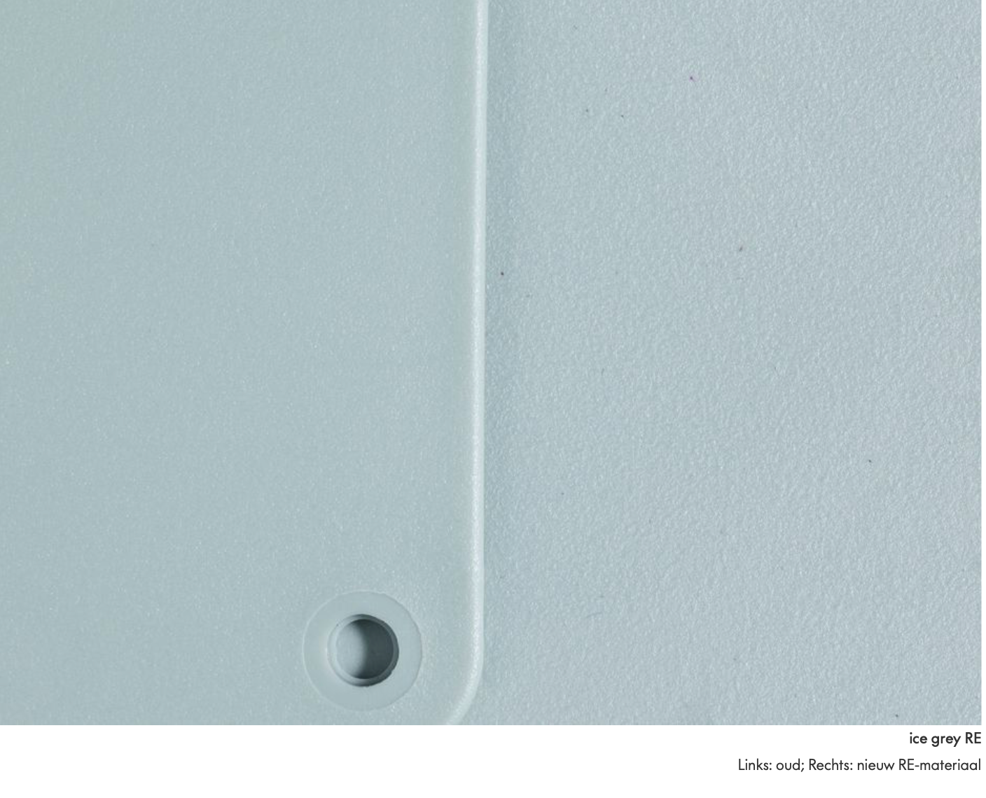 Vanaf januari 2024 maakt Vitra de Eames Plastic Chairs van gerecycled materiaal. Het gerecycleerde materiaal voor de zitschalen van de Eames Plastic Chairs RE is afkomstig van Duits huishoudelijk afval, verzameld via het 'Der Gelbe Sack' (de gele zak) systeem, en bestaat voornamelijk uit gebruikte verpakkingen. Het gebruik van dit gerecycleerde materiaal in plaats van de vroegere primaire kunststof resulteert in minder schadelijke emissies voor het klimaat en een lager energieverbruik. De zitschalen hebben nu subtiele pigmentvariëteiten door het gerecyclede materiaal. Drie kleuren worden vernieuwd als onderdeel van deze overgang: Cotton White, Citron & Emerald