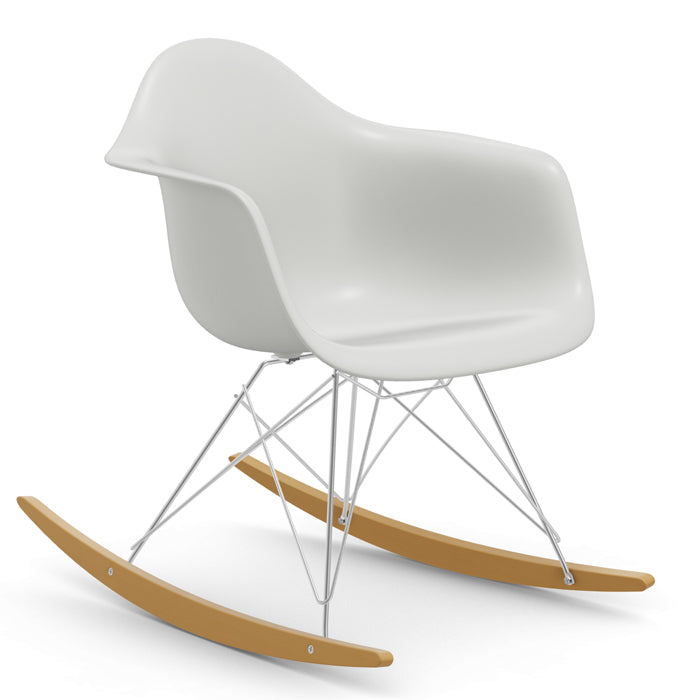 Vitra Eames RAR Schommelstoel esdoorn goud. Deze stoel worden beschouwd als een van de bekendste ontwerpen van Charles en Ray Eames. In deze grote stoelenfamilie heeft één bepaald model zich altijd weten te onderscheiden: de Rocking Armchair Rod Base (RAR). Ondanks de compacte afmetingen biedt de stoel zelfs voor grotere gebruikers een aangenaam comfort. Hij is bovendien verkrijgbaar met een zitkussen of volledig gestoffeerd. De RAR is een volwaardige fauteuil waarvan de iconische vorm een vrolijke toets toevoegt aan elke lounge, ontspanningsruimte of wachtruimte. Bekijk de Vitra collectie.