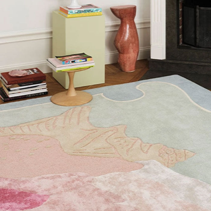 Layered shell patterned wool vloerkleed is voortgekomen vanuit een samenwerking met de Zweedse kunstenaar Åsa Jungnelius. Met het oog op het lichaam, ziel kleur en vorm straalt dit design een sterk gevoel uit van vrouwelijke kracht. Het vloerkleed is gemaakt van wol en Tencel. Tencel is een hoogwaardige versie van viscose en is net zoals wol milieuvriendelijk, door deze combinatie heeft het vloerkleed een prachtige glanzende afwerking.