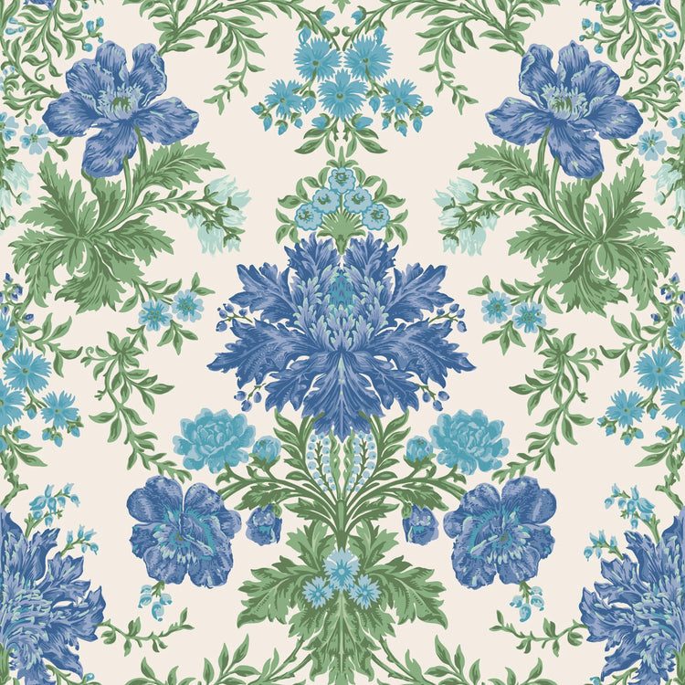 Cole and Son behang Poppies Sapphire, Cerulean and Moss on Stone 128/7035