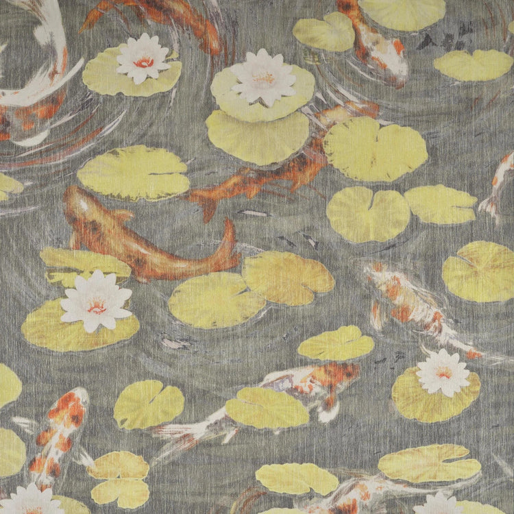 Le Bassin aux Nénuphars haalt de rust en schoonheid van een kasteelvijver in huis. Karpers en waterlelies lijken te bewegen op het water, terwijl de print op een speciaal non-woven materiaal met zilveren folie het glinsterende wateroppervlak prachtig nabootst. Zo ontstaat een eigentijdse, serene en elegante muurdecoratie.