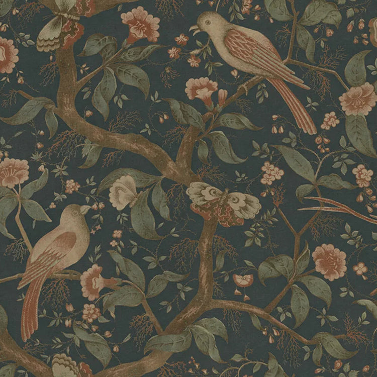 Alexa is een sierlijk en romantisch behang met fantasierijke vogels en bloeiende takken. Het ontwerp heeft een zachte, klassieke uitstraling die doet denken aan antiek textiel. Het geeft je kamer een rustige, elegante sfeer met een vleugje geschiedenis en charme.