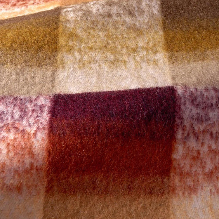 Bergen is een moderne stof die doet denken aan mistige Scandinavische fjorden. Het patroon bestaat uit grote ruiten die zacht in kleur overlopen. De stof voelt warm en wollig aan, en is stevig genoeg om op te zitten. Ze wordt gemaakt in de erkende werkplaatsen van Pierre Frey in Noord-Frankrijk, waar vakmanschap centraal staat.