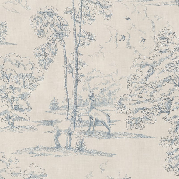 Dit behang neemt je mee op een rustige wandeling langs de Pyreneeën, tussen schapen en wilde herten. De handgetekende illustraties geven het een zacht en natuurlijk gevoel, alsof het een reisverhaal op je muur is. De kalme blauwe tinten zorgen voor een ontspannen en stijlvolle sfeer in huis.