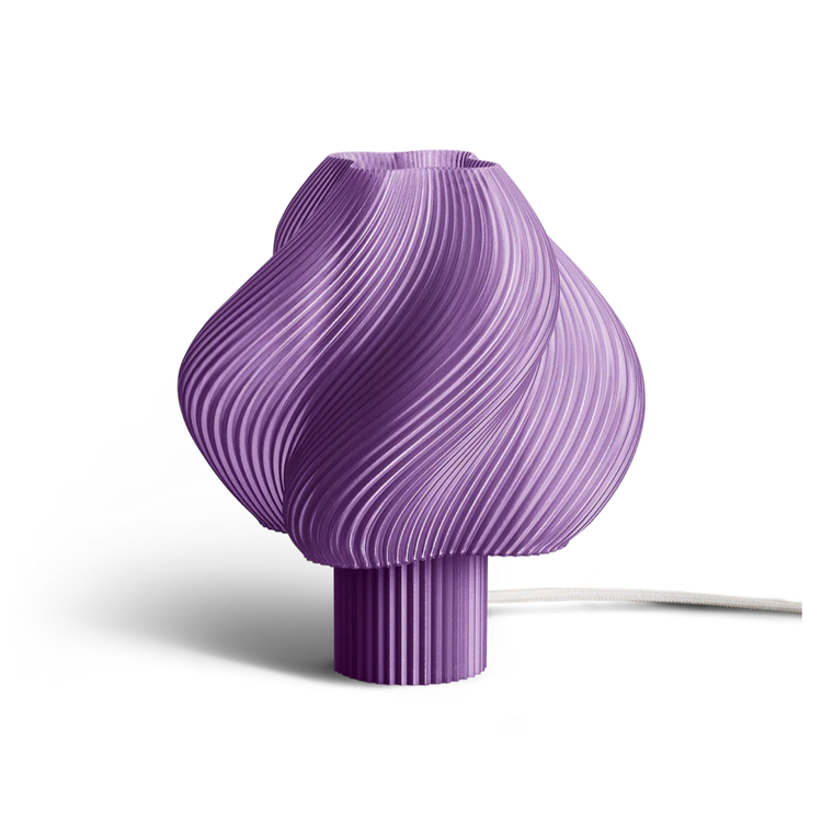 De lampen van Crème Atelier hebben zachte, golvende vormen die doen denken aan softijs, uitgevoerd in vrolijke sorbetkleuren. Elke lamp wordt 3D-geprint op bestelling in Stockholm van gerecyclede materialen. De fijne gelaagde structuur en dimbare verlichting zorgen samen voor een warme, speelse sfeer. Niet voor niets won het merk meerdere designprijzen, waaronder de German Design Award 2024, Scandinavian Design Award 2023 en Iconic Award 2024.