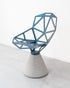 De One chair, ontworpen door Konstantin Grcic in 2003 voor het Italiaanse meubelmerk Magis, is een iconische stoel die opvalt door zijn unieke, geometrische ontwerp. De stoel heeft een zitting die lijkt op een ingewikkeld stalen geraamte, vervaardigd uit gegoten aluminium. Dit geeft de Chair_One een industriële uitstraling en maakt hem tegelijkertijd licht en sterk. De stoel is veelzijdig en geschikt voor zowel binnen- als buitengebruik. Zijn innovatieve en vooruitstrevende design heeft de One chair tot een veelgeprezen object in de wereld van hedendaags meubeldesign gemaakt.