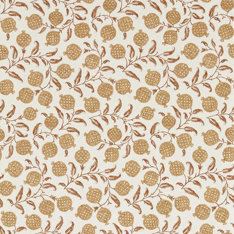 Dit behang heeft een organische en decoratieve stijl, met een kleinschalig patroon van gestileerde vruchten, granaatappels en bladeren. Het tweekleurige palet en de oorsprong in blokdruk-stof geven het een warme, ambachtelijke uitstraling. Perfect voor wie houdt van een natuurlijk, verfijnd patroon met een vleugje vintage. Verkrijgbaar in 3 kleuren.