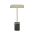 Bijzettafel bestaande uit een blad en steel van met anti-vlekken behandeld, vermessingd staal en een onderstel van zwart Marquina-marmer. Bijzettafel bestaande uit een blad en steel van anti-vlek behandeld, messing gelakt staal en een onderstel van zwart Marquina-marmer.