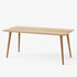 De In Between-stoel was de eerste stoel die werd toegevoegd aan de & tradition-stal van meubels en Kallio heeft bepaalde aspecten van de stoel opnieuw geïnterpreteerd bij het maken van de tafel. De kromming van de ronde tafel herinnert bijvoorbeeld aan de negatieve ruimte in de vorm van de rugleuning van de stoel. Op dezelfde manier weerspiegelen de hoeken van de poten van de tafel de hoeken van de stoelpoten. De tafelpoten zijn gemaakt met houtdraaibewerking, een traditionele techniek waarbij een draaibank wordt gebruikt om hout te vormen. Voor & traditie is een verbinding met het verleden een essentieel onderdeel voor elk item in de collectie. "Houtdraaien is het resultaat van mijn liefde voor Scandinavisch erfgoed en traditionele houtbewerking", zegt Kallio, "er is een voldoening die voortkomt uit het gebruik van oude technieken." De materialen die voor de tafel worden gebruikt, sterken verder een link naar het verleden. De gebruikte massieve eik is een stevig, betrouwbaar hout dat is doordrenkt van Scandinavisch erfgoed. "Eik is een goed duurzaam materiaal waar mensen zich gemakkelijk mee kunnen identificeren", zegt Kallio. Hoewel sommige van de productieprocessen traditioneel zijn, wordt de tafel nog steeds gedemonteerd als een flat-pack, waarbij het gemak van transport in een moderne wereld wordt aangepakt. Bovendien is de vorm van de tafel gekozen om problemen binnen moderne interieurs aan te pakken. De ronde vorm betekent dat het uit de muur moet worden gehaald en daarom in elke kamer een actieve rol moet spelen. De ronde vorm van de tafel betekent ook dat interactie aan tafel een meer intieme en egalitaire aangelegenheid is.